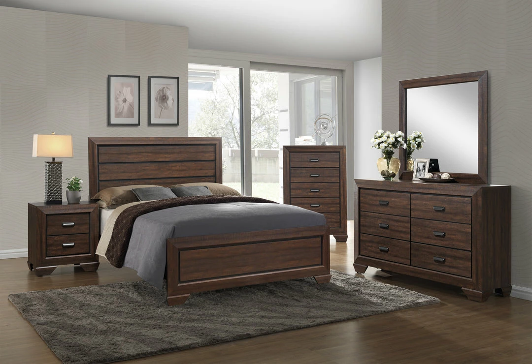 - Set includes Bed, Dresser, Mirror, Chest, (2)Nightstands