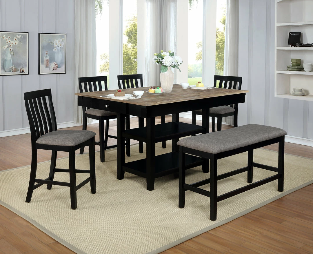 - Set includes Dining Table with 4 Chairs and Bench