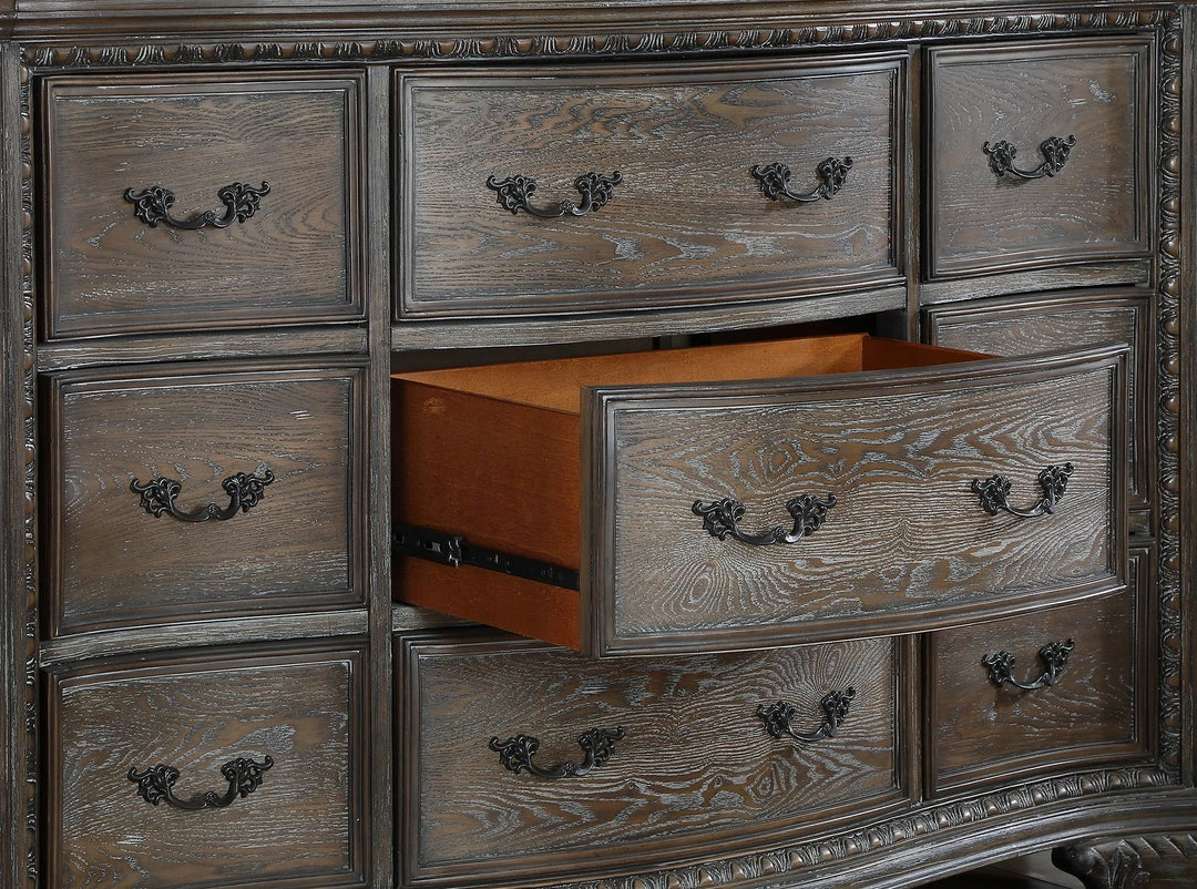 - Set includes Queen Bed, Dresser, Mirror, Chest and Nightstand