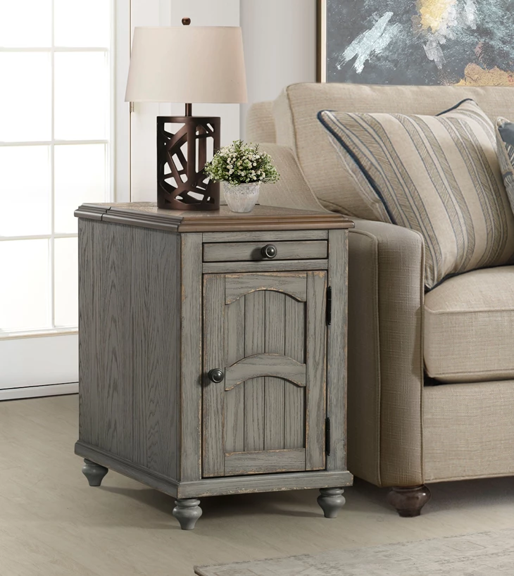 - Two tone antique gray and rustic oak finish